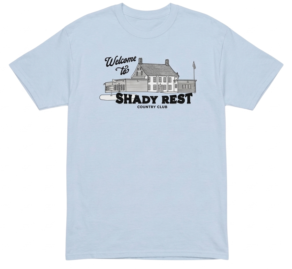 The Clubhouse Classic Tee is more than just a t shirt it is a tribute to the timeless elegance and legacy of Shady Rest Country Club. Featuring a clean line drawing of the clubhouse, this piece captures the charm and history of the club in a subtle wearable design.